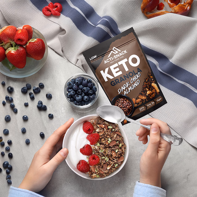 Our Keto Dark Choc Almond Granola is made from toasted coconut, almonds, seeds and rich cocoa. With only 2g of sugar per serving, it is rich in good fats, protein & fibre to keep you going for longer.