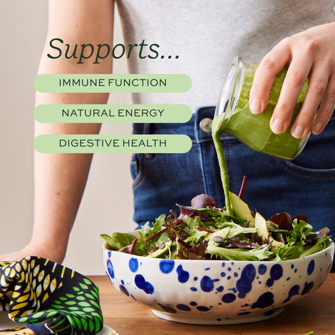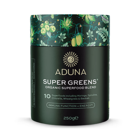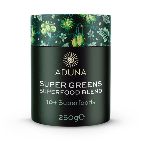 Aduna Super Greens Blend is a deliciously green and zesty combination of our Essentials Superfood FormulaTM PLUS our daily Super Greens Blend.