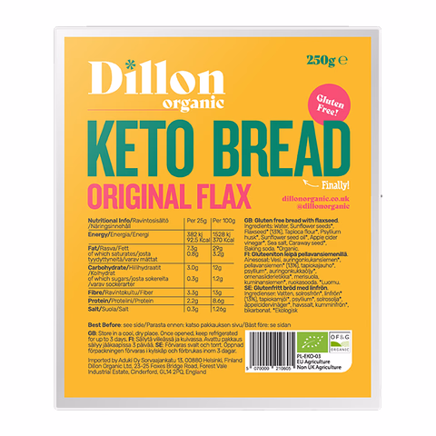 This is our original Organic Keto bread made with a blend of flax, sunflower seeds, and caraway seeds for flavour. It comes as an unsliced half loaf and that gives you the freedom to choose which thickness you’d like to make your slice. Great toasted or double toasted and made into an open sandwich.