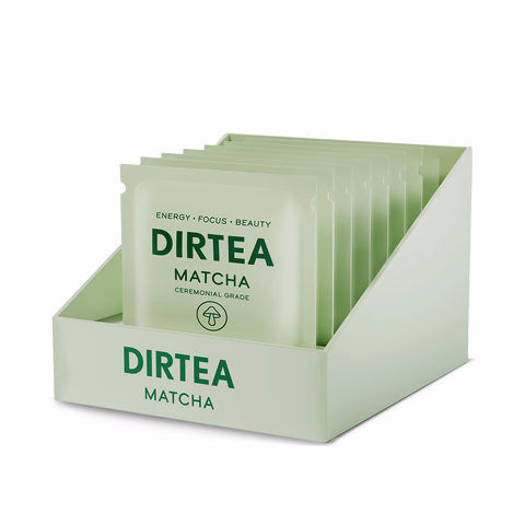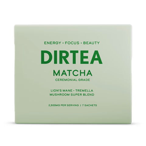 DIRTEA Matcha enhances focus, energy, and supports the nervous system. Made with 100% pure ceremonial-grade Japanese matcha and infused with brain-boosting Lion’s Mane and hydrating Tremella mushroom extracts. Enjoy this balanced, velvety blend, providing steady energy and calm focus.