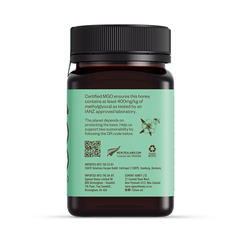 - Certified MGO ensures this honey contains at least 400mg/kg of methylglyoxal as tested by an IANZ approved laboratory.