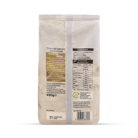 This lupin flour is made from a legume called the sweet lupin bean, which is a relative to peanuts and soybeans. It is high in protein, fibre and potassium and provides a source of iron too. This naturally gluten-free alternative can be used as a simple way to increase the nutritional content of your baking and cooking. Most recipes recommend using this flour as a blend with others – it’s great as a replacement for traditional flour and increases protein in any recipe. Toasted Ground Lupin Flour.