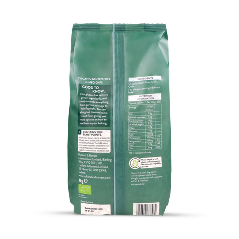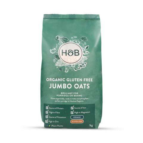As well as being gluten free and high in fibre, our jumbo oats are a super versatile kitchen staple that can be used for a wide range of breakfast and baking recipes. From topping your favourite seasonal crumble to overnight oats and homemade granola, this convenient 1kg bag is a must-have for gluten-free households. Plus, these organic jumbo oats are also a source of minerals – including potassium, iron, magnesium and zinc.