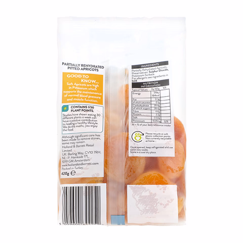 Partially Rehydrated Apricots, Preservatives:Â Sulphur Dioxide, Potassium Sorbate.