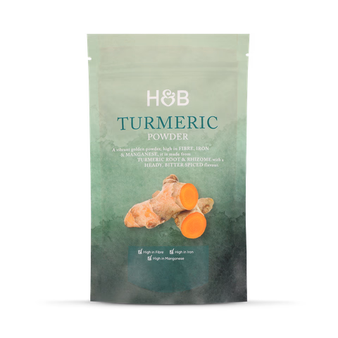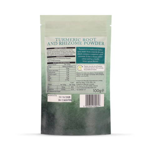 Holland & Barrett’s Turmeric – a vibrant golden powder made from turmeric root and rhizome, containing a compound called curcumin – is high in fibre, iron and manganese. Turmeric is a traditional Indian spice that has a heady, bitter-spiced flavour – it is often used as the main ingredient in curries.