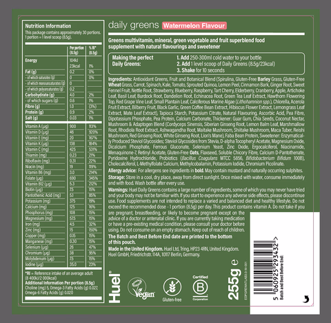 Add 1 level scoop of Daily Greens (8.5g/23kcal), Storage: Store in a cool, dry place away from direct sunlight. Once mixed with water, consume immediately.