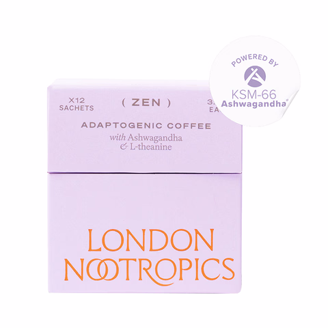 Barista-style coffee, L-theanine, KSM-66 organic ashwagandha root extract, natural flavouring.