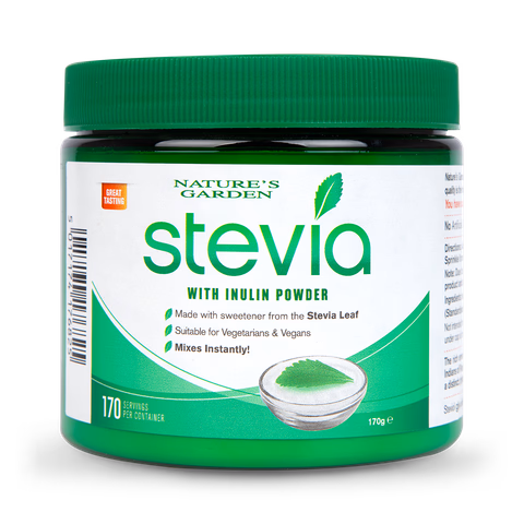 Nature’s Garden Stevia is a great-tasting natural sweetener is free from sugar and made from natural stevia extract and inulin.