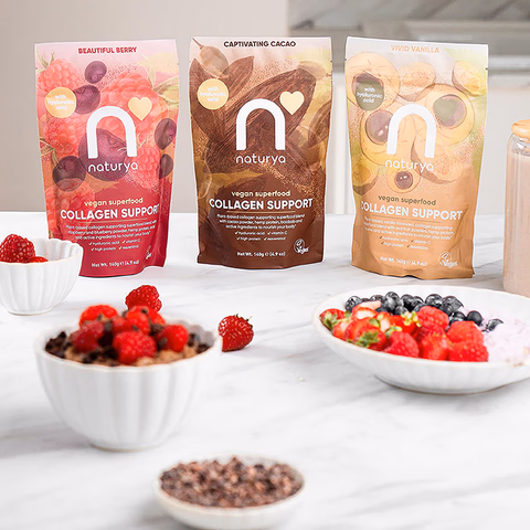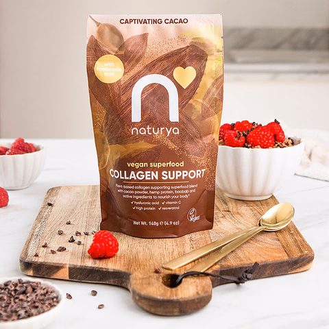 Unlock the powder of nature with Naturya’s Collagen Support vegan superfood blend. Collagen is the most abundant structural protein in the body and is essential for a large majority of our body from skin, hair and nails to joints, bones and muscles.