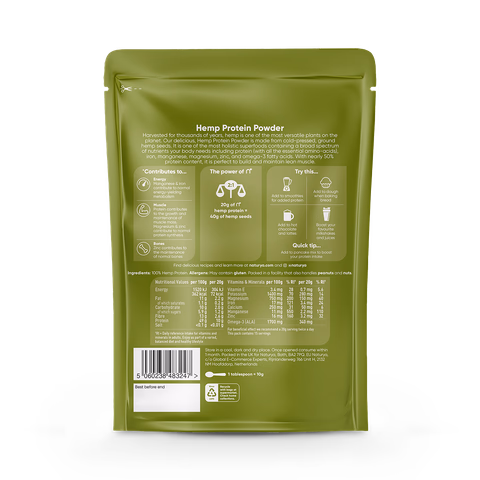 From plant to powder, Naturya hemp protein goes through a thorough process to guarantee the final product is of the highest quality and nutritional density. Raw hemp seeds are cleaned and finely sieved, passed through metal and stone detectors, then gently cold-pressed without using any harmful chemicals. Naturya hemp protein contains no flavouring so you can add it to smoothies, cereal, homemade energy bars, bakes and soups.