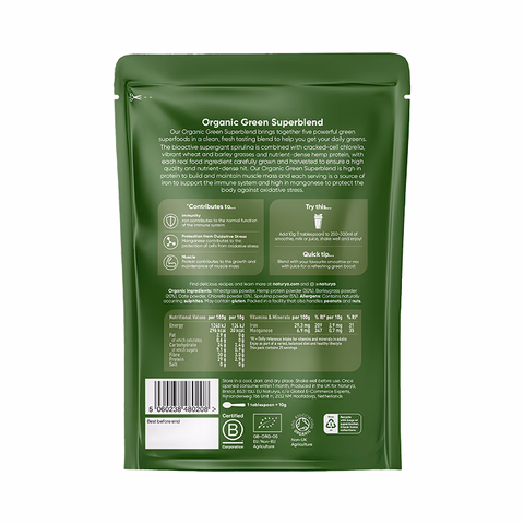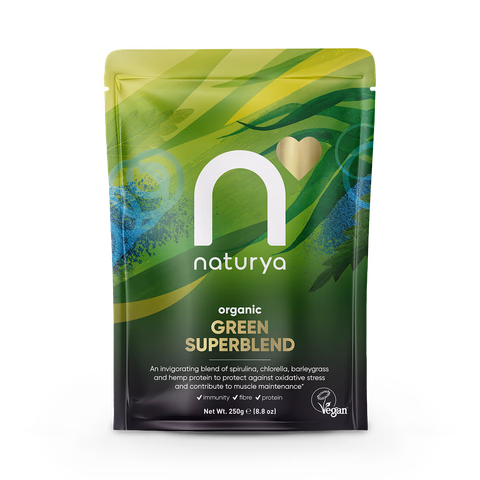 Naturya organic Green Superblend brings together six nutrient-dense superfood powders to deliver a whole array of nutrients your body needs daily. Invigorating and incredibly versatile, use this blend to add fibre, protein, vitamin B12 and zinc to smoothies, breakfast bowls and bakes.