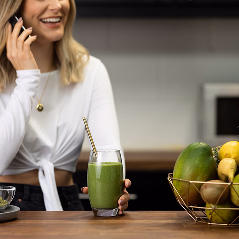 Blend with your favourite smoothie and enjoy. Add 10g (1 tablespoon) to 250-300ml of smoothie, milk or juice, shake well and enjoy! Boost your baking and snacks. Mix with juice for a refreshing green boost.