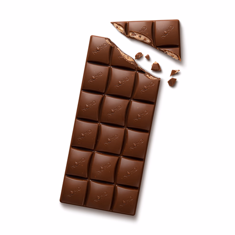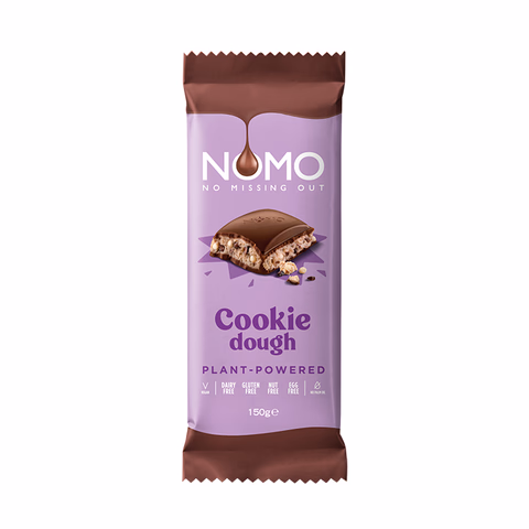 - Non-dairy alternative to milk chocolate with a cookie dough flavour centre containing rice cereal (0.9%) and cocoa pieces (0.8%).