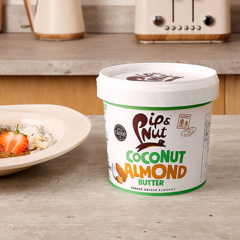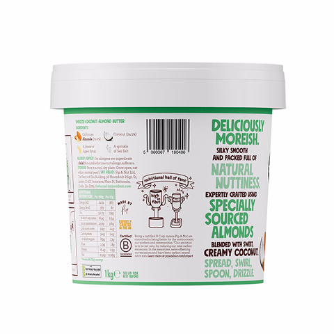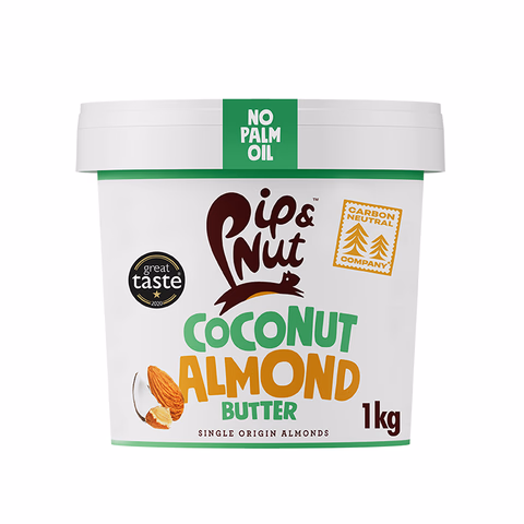 A 1kg tub of our silky smooth Coconut Almond Butter. Our original flavour blend, this is a Pip & Nut favourite for a reason and a cupboard staple for any coconut lover. Like our classic Almond Butter, we make this using the finest Californian almonds and add some coconut for a tropical twist.