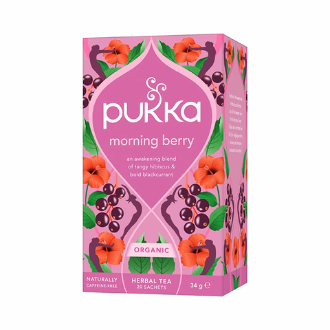 Perfect for energy and naturally caffeine free. Naturally awaken with our expertly blended Morning Berry tea. Bursting with sweet blackcurrant, succulent blackberries, and refreshing hibiscus, the fruity flavours are complimented by the revitalising essence of rooibos, rosemary, and ginseng.