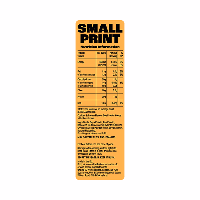 Soya Protein, Pea Protein, Rapeseed Oil, Sweeteners (Erythritol, Steviol Glycosides), Cocoa Powder, Inulin, Soya Lecithin, Natural Flavouring.